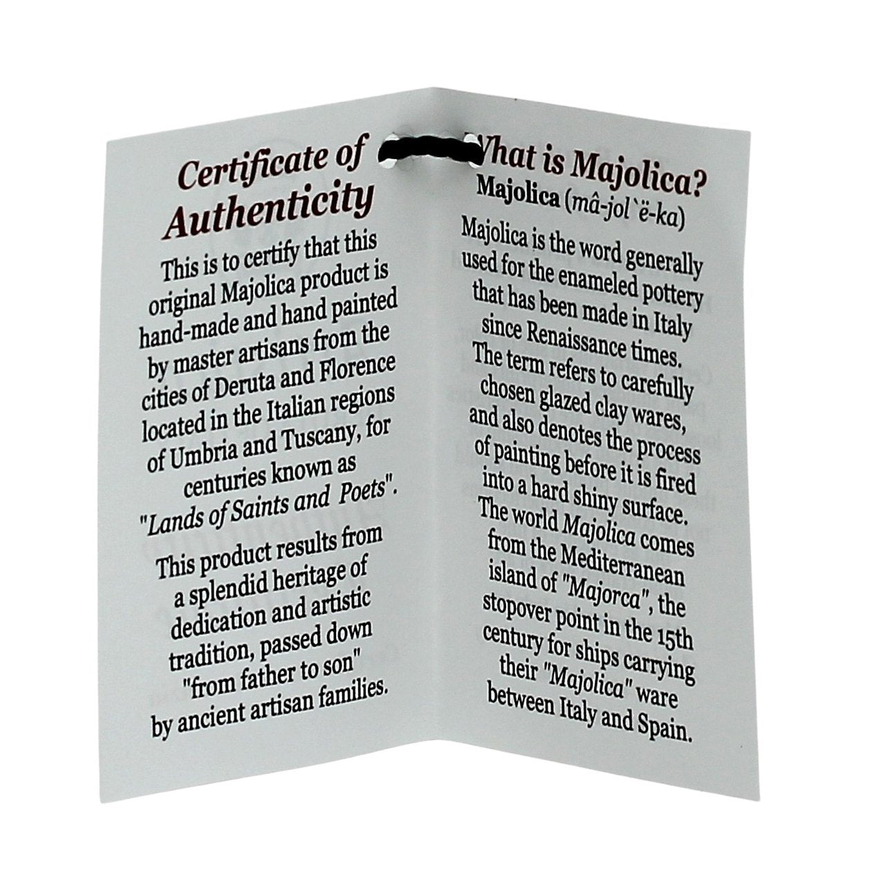 Featuring the original top quality "Deruta of Italy" products.