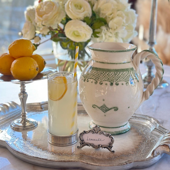 Hand painted on shapes with uneven edges, vintage and fresh combine in this charming collection.